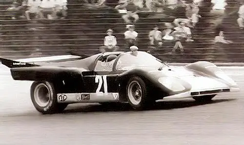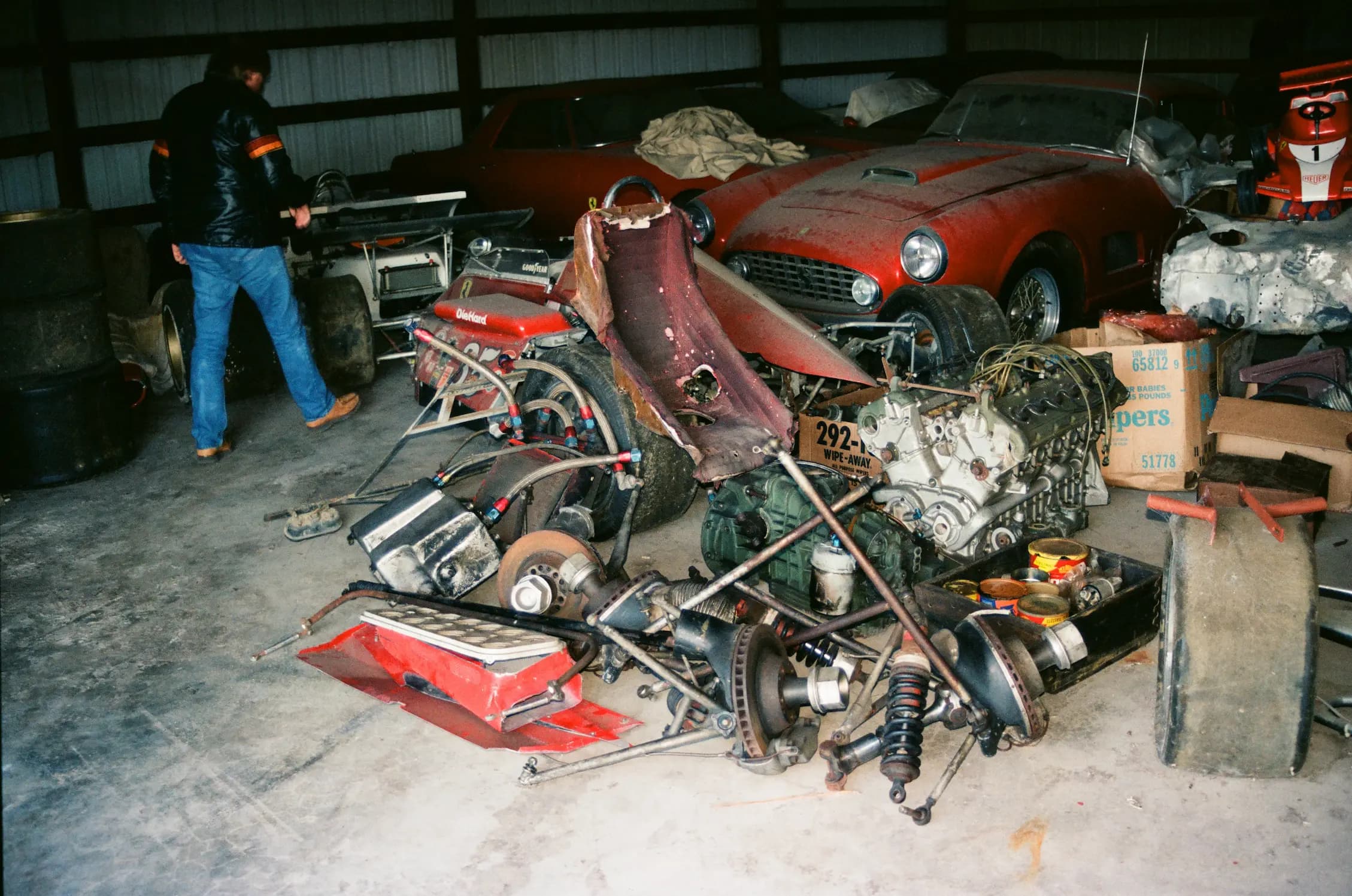 in 1975 this 512 S went to a long term owner who loaned the car to Marauder Co. for an attempt to have the 512 body replicated. While the car was apart the owner convinced USAC Racing that the 512S motor was a "stock Block" and they put together an Indy car with a 5 litre stock block engine and raced at a few events. After the body was returned from the replica shop and the engine returned from the Indy car, the pieces of the car sat in a barn in Florida for many years.